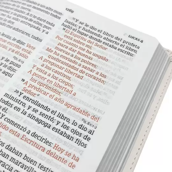 RVR 1960 Biblia letra grande tamaño manual, con referencias en cadena, palabras de Cristo en rojo, plan de lectura, atributos de Jesús, y mapas a todo color. El tamaño de Biblia más popular, por combinar un diseño legible con un tamaño práctico. El tipo de letra, creado exclusivamente para Biblias Holman, es estético y cómodo para el lector. Las referencias y ayudas adicionales son el complemento perfecto al texto de la Reina Valera 1960, la versión preferida en español. Con esta Biblia podrá llevar la Palabra consigo y atesorarla en su corazón.