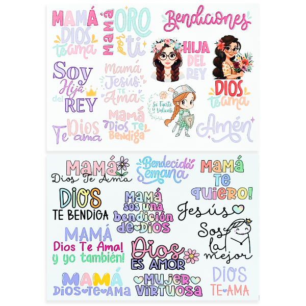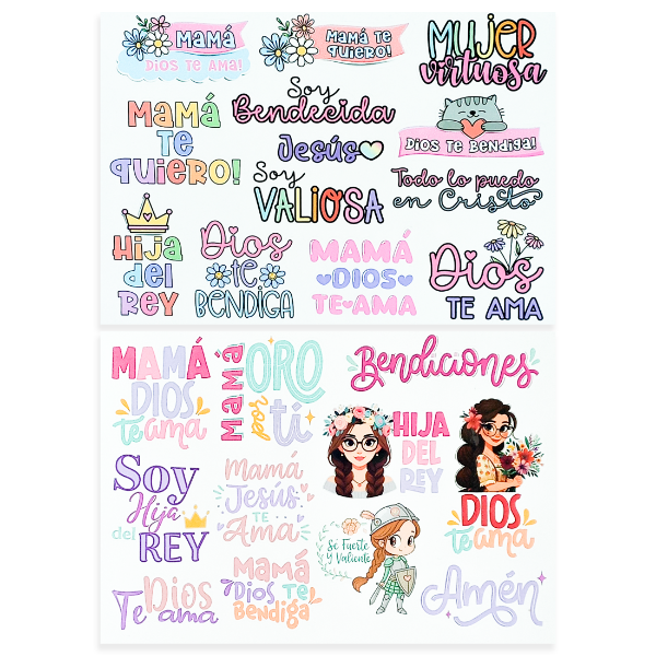 Cada sticker cuenta una historia de fe y esperanza, con imágenes de el nacimiento de Jesús, los reyes magos, ángeles, estrellas, frases cristianas y más. ¡Disfruta de la textura tridimensional que cautivará a todos!