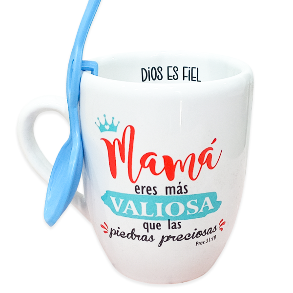 TAZA DE LOZA BLANCA CON TEXTO COLOR