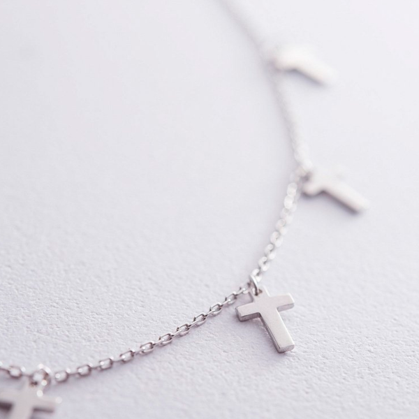 Collar Con Cruces De Acero Plateado