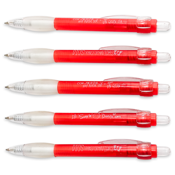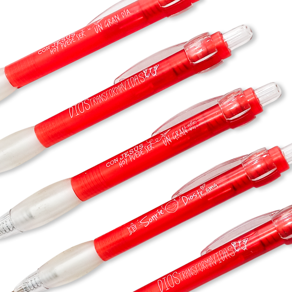 Biromes personalizadas de plástico rojo retractil, de 15 cm de largo.