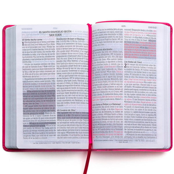 En nuestra Biblia de Promesas se resaltan más de 1,800 promesas y palabras de afirmación de nuestro Dios para nosotros. Dios tiene las palabras que necesitamos tanto en nuestros momentos de mayor angustia como en nuestros episodios de mayor celebración. Las promesas de Dios te acompañan en todo momento y para siempre. La nueva tipografía a 12 puntos y su elegante y delgado diseño, en múltiples y exclusivas opciones, permite una agradable lectura, estudio e interacción con el texto bíblico.