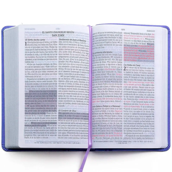 En nuestra Biblia de Promesas se resaltan más de 1,800 promesas y palabras de afirmación de nuestro Dios para nosotros. Dios tiene las palabras que necesitamos tanto en nuestros momentos de mayor angustia como en nuestros episodios de mayor celebración. Las promesas de Dios te acompañan en todo momento y para siempre. La nueva tipografía a 12 puntos y su elegante y delgado diseño, en múltiples y exclusivas opciones, permite una agradable lectura, estudio e interacción con el texto bíblico.