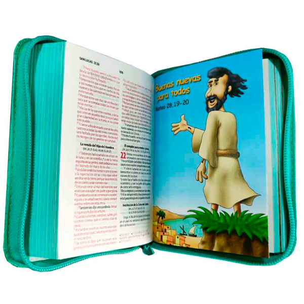 ¡Descubre la Biblia perfecta para los más pequeños! Diseñada especialmente para que los niños se sumerjan en los relatos bíblicos de manera divertida y educativa. Con esta Biblia, construirán las bases de su vida cristiana mientras disfrutan de un aprendizaje ameno.